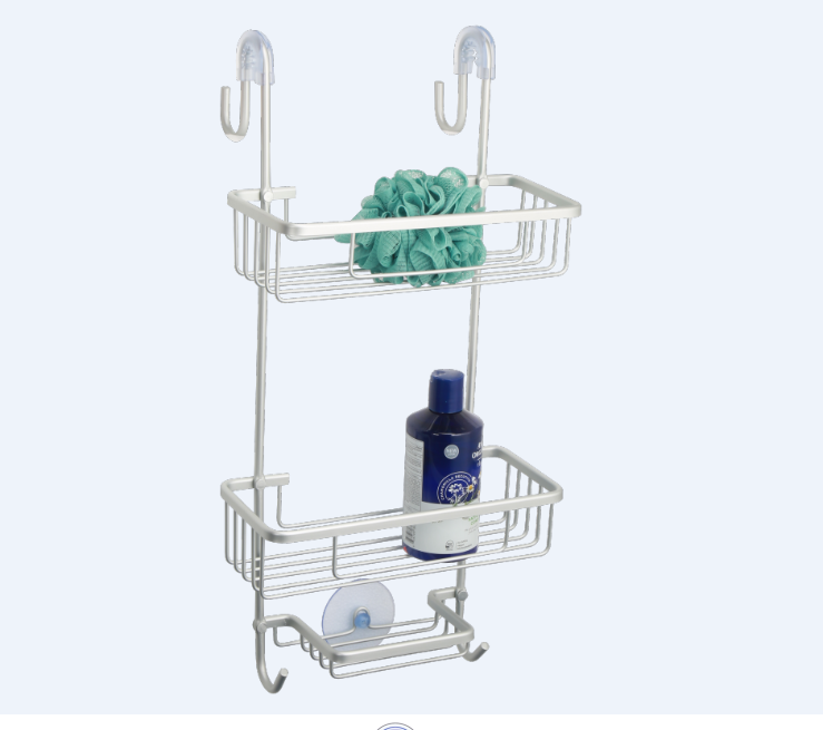 מתלה כפול על מקלחון עשוי אלומיניום טבעי