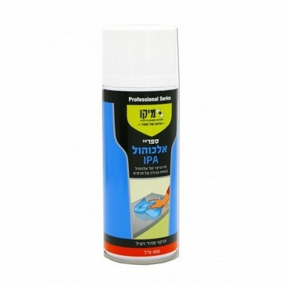 ספריי אלכוהול IPA נקי 99%. לניקוי והכנת משטחי הדבקה, להבטחת הדבקה חזקה ואיכותית למשטח.