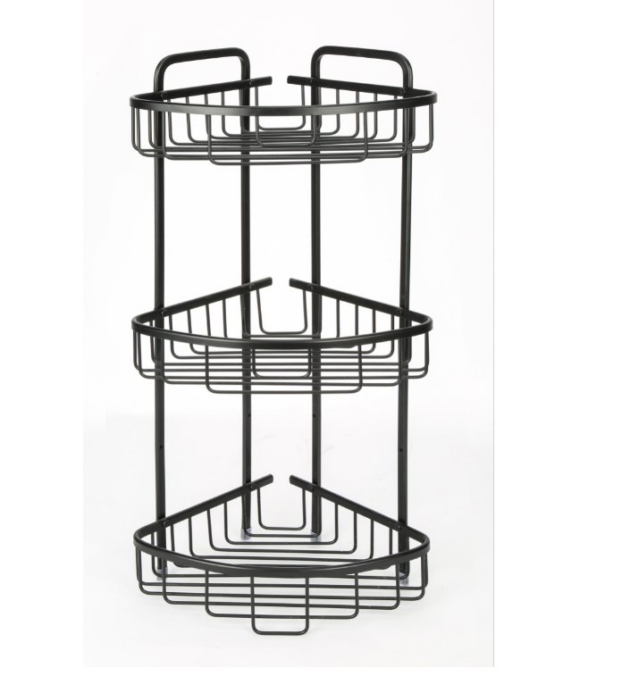 מדף פינתי שלוש קומות עשוי אלומיניום בציפוי שחור מט